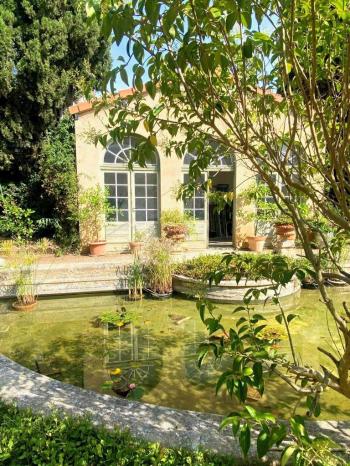 Le très beau parc de 1456m2 entourant cette propriété, avec une allée paysagée, dispose de nombreuses essences méditerranéennes et des arbres fruitiers, une orangeraie côté jardin avec un bassin à poisson, un espace de vie extérieur avec une piscine atypique (en symétrie avec le bassin à poisson, il rappelle la forme de celui-ci), une terrasse d’été couverte et un espace barbecue.